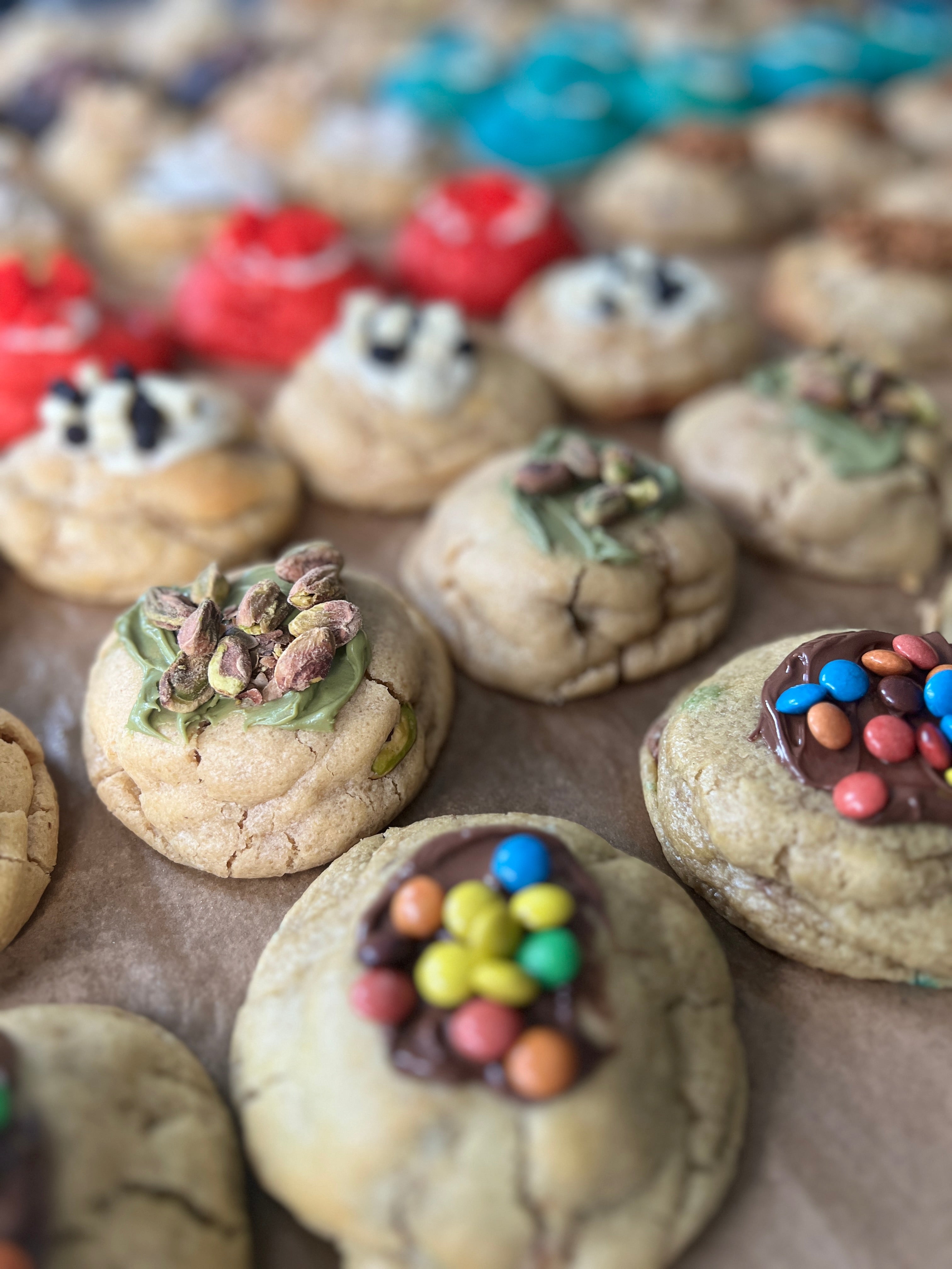 Unsere Cookies sind nicht nur außen knusprig & zart – innen wartet die pure Verführung: cremige Schokoladenfüllungen, zartschmelzendes Karamell, fruchtige Überraschungen und mehr. Jeder Biss ein kleines Abenteuer für deinen Gaumen!